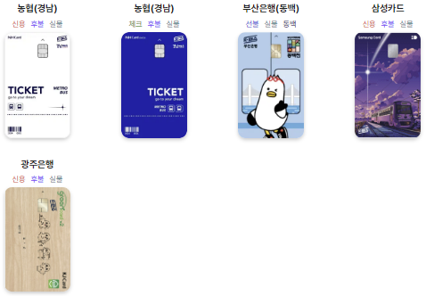 | 부산권 | 부산, 김해 | 부산 도시철도와 버스 할인, 지역 특화 외식 및 문화 혜택 포함 |